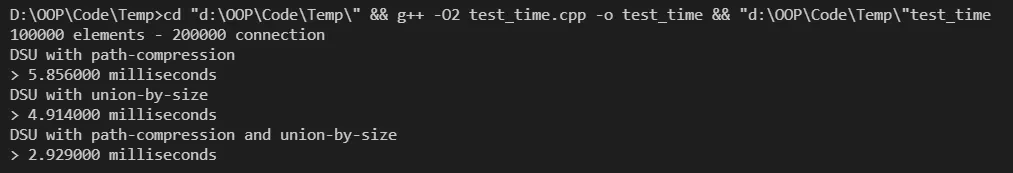 Cài đặt path-compression kết hợp với union-by-size sẽ làm DSU trở nên siêu tốc độ.